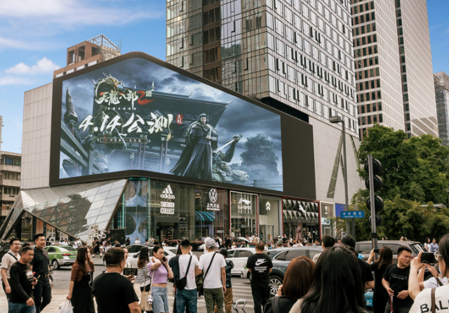 【真·飞龙战天 裸眼3D倾情放映】在成都邃古里,《天龙八部2:飞龙战天》手游为所有玩家献上公测视觉盛宴。乔峰运起招牌绝学降龙十八掌,金龙环游跃出屏幕直冲天际。