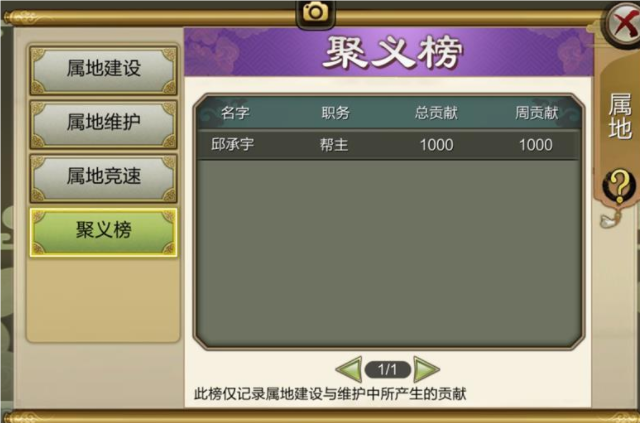 !      【属地竞速得绑定元宝 聚义榜英雄风云】玩家在必定时间段内将属地建造等级提升至目标等级,帮会内所有精英及以上头衔者就取得一次性的绑定元宝奖赏。      便形成了集合风云人物、英雄豪杰的聚义榜,不仅增添了游戏的趣味性,还大大增强了帮会属地与个人之间的荣誉竞争感,让属地建造丰富了许多。      想要取得额定奖赏就在规则时间内努力建造自己的帮会属地吧!玩家在建造属地过程中的建造和保护捐赠还会形成贡献值,根据每位玩家的贡献值形成排名。