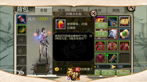 关于萌新来说,女神服是极为友爱的,首日就能轻松直升65级了,并且在达到10倍数的等级时,还享有翻倍的礼包奖赏。礼包内,满满都是硬货,比如20级礼包送的【5级生命宝石】和【100个冰魄神丹】,刷怪时能够无压力抵挡小怪伤害,培养人物时,也能任性一下大手笔升阶。      游戏内,引荐萌新们自动寻觅高等级的大神带队,直接进入高收益副本:聚贤庄、燕王古墓、珍珑棋局及燕子坞,通关后可获得高级配备、道具,而带队的队长也能额外获得奖赏礼包,一举两得,互惠互利。      这第三步,是想教授萌新一个拉近与大神间隔的窍门。关于每日有应战次数要求的副本来说,如果你没能在当日刷完日常副本,那么记得在第二天或之后选择0元宝回购副本,使用空闲时间将错失的副本通关,把日常收益一扫而光,以便及时弥补和大神们的差距。      作为高玩,身边怎能没有妹子呢?明日,空间点赞功能开放了,无妨去给心仪的妹子点个赞,说不定就能撩到一个媳妇,赶在七夕之前脱单。别的,当个认真负责的师父,可爱小学徒以身相许的喜事儿在天龙也不少哦。