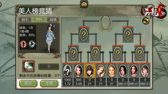 就全看妳的喜好了,對自己的命運不自傲的少俠, 佳人獲勝之後妳將會依據賠率贏取相應數量的【玉菩提】獎勵,在兌換商鋪兌換各種資料。 也能夠選擇直接運用【玉菩提】兌換資料,但說不定賭壹賭就單車變摩托,仍是佳人競猜走壹波~至於究竟支撐誰,為愛壹擲千萬菩提也沒什麽大不了!